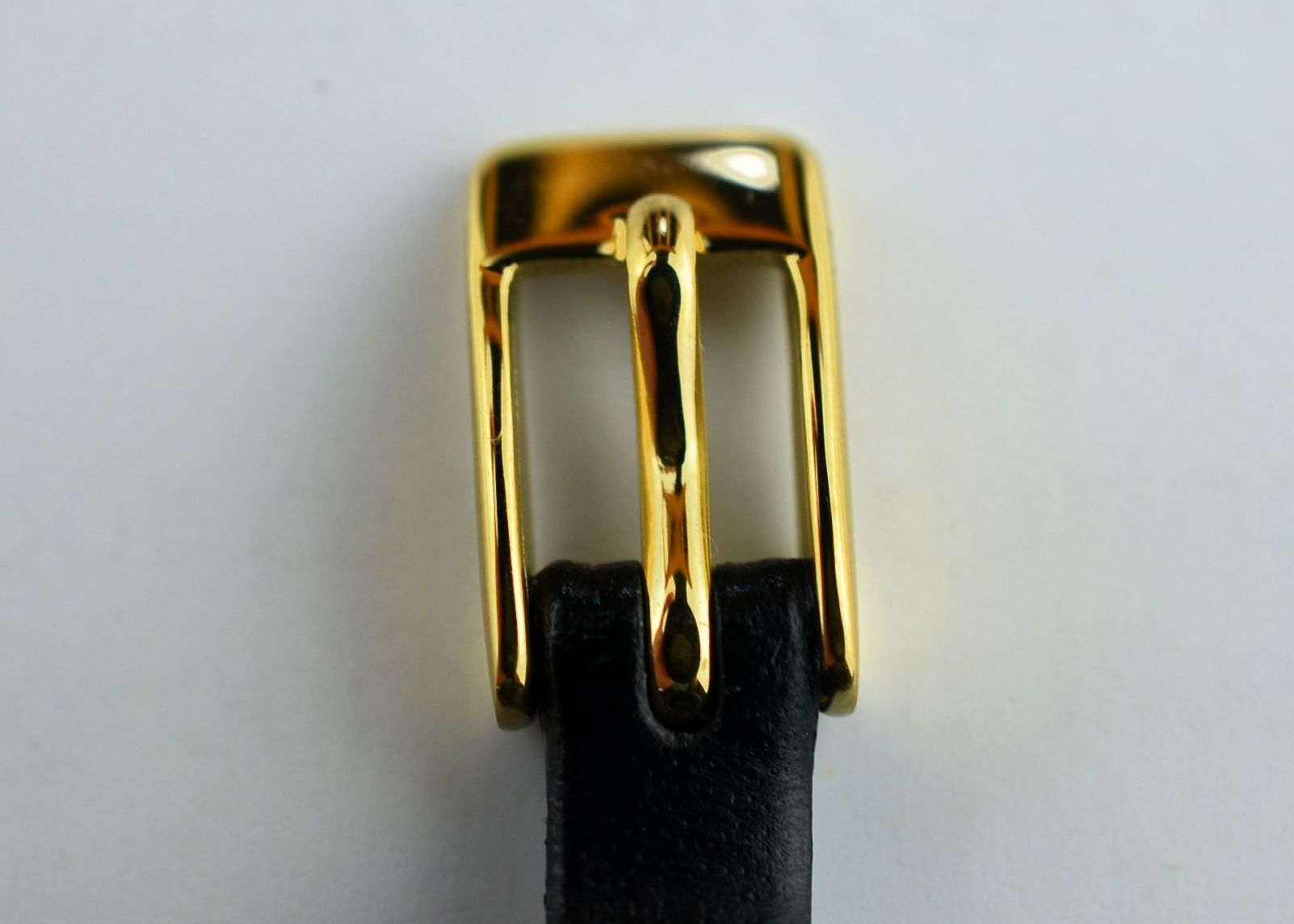 A Condor unisex genuine black leather 10mm watch strap which is available either with steel or gold buckle.