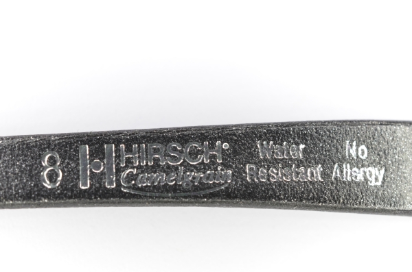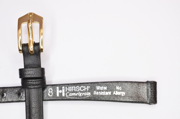 Hirsch 'Camelgrain' supple leather strap with natural grain in black with a gold or steel buckle. Has a 1 year manufacturers warranty. The model is 01009150-1-13.