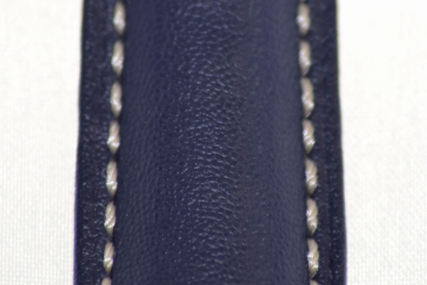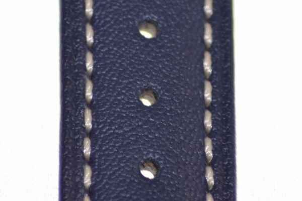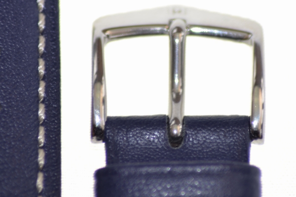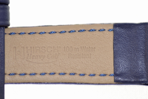 Hirsch 'Heavy Calf' top quality italian calfskin thick leather strap in blue with white stitching and is available with either a steel or gold buckle. This strap is 100m water resistant and has a 1 year Hirsch warranty. The model number is 01475080-2-26.