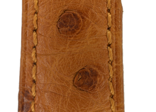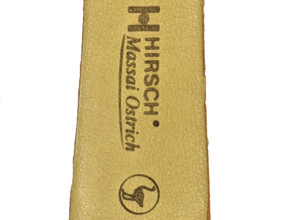 Hirsch 'Massai Ostritch' golden brown natural vegetable tanned ostritch leather 16mm watch strap, with a gold or steel buckle. The model is 04262170-1-16 and it has a 1 year manufacturers warranty.