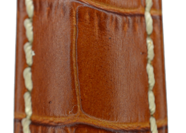 Hirsch 'Modena' Honey alligator grain 22mm leather watch strap. It is available with either a gold or steel buckle. The model number is 10302875-2-22 and it has a 1 year Hirsch warranty.