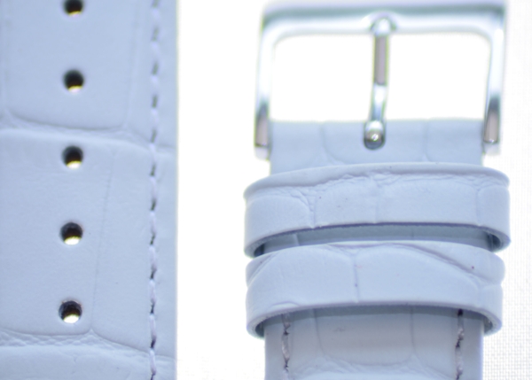 Padded crocodile 22mm White leather watch strap. It is available with either a gold or steel buckle
